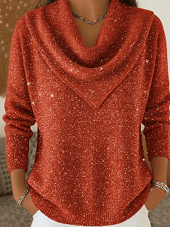 🎄 CLEARANCE SALE🔥 Vintage Soft Triangle Neck Sequined Shiny Sweater Top