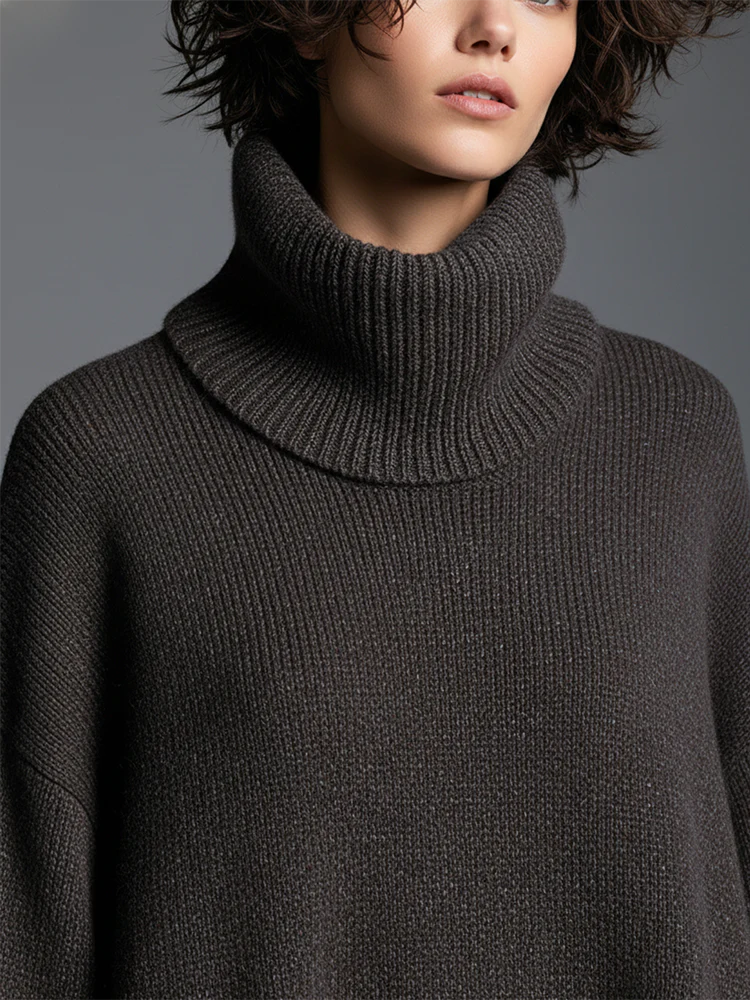 Women's Solid Color High-Neck Long-Sleeve Casual Loose Knit Dress