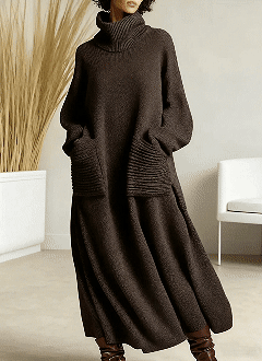 The High-End Fashionable Loose Neckline Brown Knitted Maxi Dress is the epitome of refined comfort and elevated everyday style. Made from a premium-quality, soft knit fabric, this maxi dress drapes effortlessly over the body, creating a long, flowing silhouette that flatters all figures.